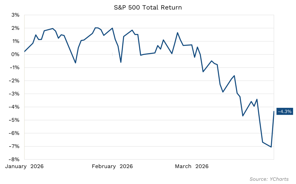 By the end of the first quarter, the S&P 500 had retreated 7% from its January 12th peak, while the Nasdaq officially entered correction territory with a decline exceeding 10%. A late March bounce brought the year-to-date decline in the S&P to 3.5%. International equities also softened, though they maintained their relative lead over U.S. markets.